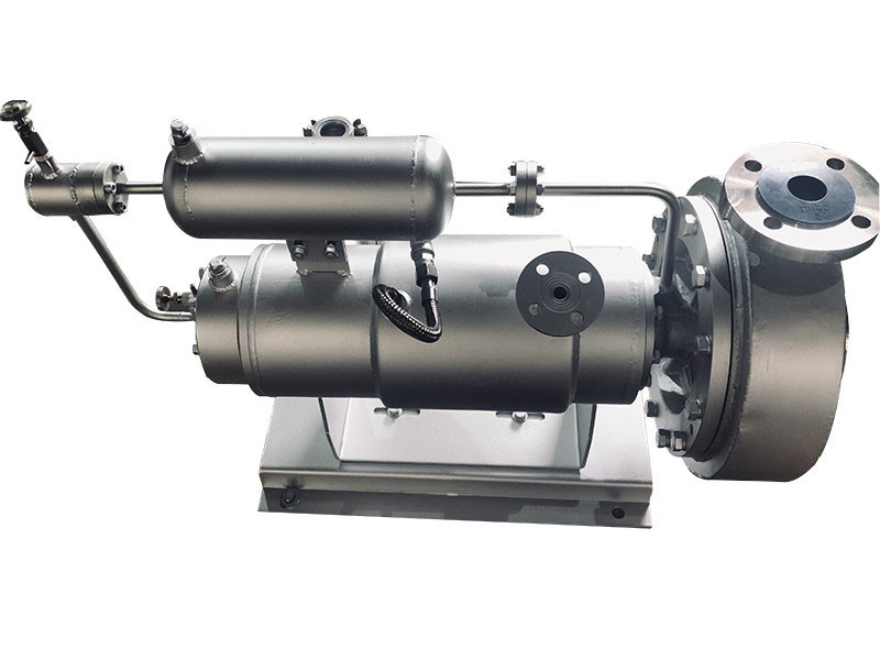 屏蔽泵是用同一根軸將電機(jī)的轉(zhuǎn)子和離心泵的葉輪固定在一起,然后用屏蔽套將這一組轉(zhuǎn)子屏蔽住。而電機(jī)的定子圍繞在屏蔽套的四周,屏蔽套是由金屬制成的,因此動(dòng)力可以通過磁力場傳遞給轉(zhuǎn)子。而整個(gè)轉(zhuǎn)子都在被泵送液體中運(yùn)轉(zhuǎn)。屏蔽的端部靠法蘭或焊接的結(jié)構(gòu)實(shí)現(xiàn)靜密封。屏蔽套實(shí)際上是一個(gè)壓力容器。定子的內(nèi)表面和轉(zhuǎn)子的外表面裝有耐腐蝕金屬薄板制造的定子屏蔽套和轉(zhuǎn)子屏蔽套。各自端面用耐腐蝕金屬薄板與它們焊接,與被輸送液體分隔,使定子繞組鐵芯和轉(zhuǎn)子鐵芯不受浸蝕。除了屏蔽套之外,還有一個(gè)部件是循環(huán)管,利用泵送液體對軸承潤滑與冷卻,有時(shí)也對電機(jī)冷卻。屏蔽泵的軸向力平衡方式,通常采用自動(dòng)推力平衡裝置,有時(shí)也選用葉輪背面裝有徑向葉片,即背葉輪推力平衡機(jī)構(gòu)。